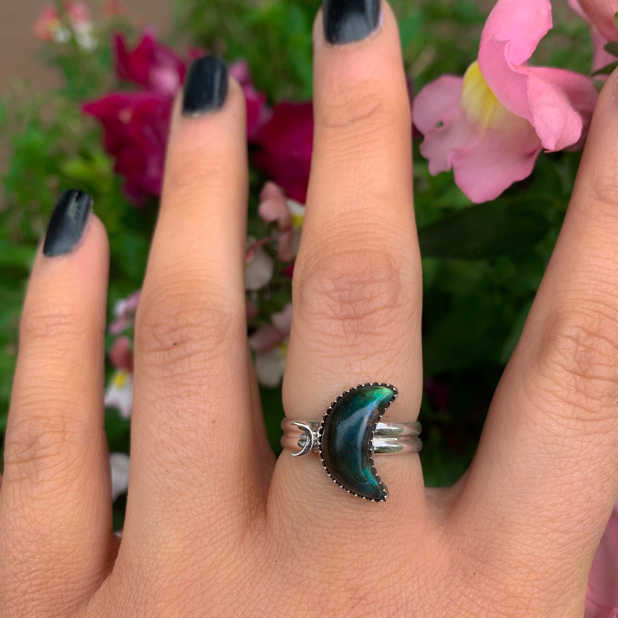 Labradorite Moon Ring - Size 7 1/4 to 7 1/2