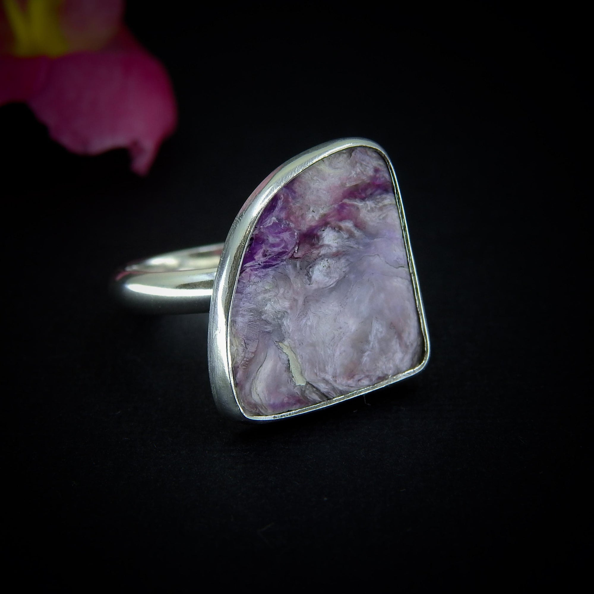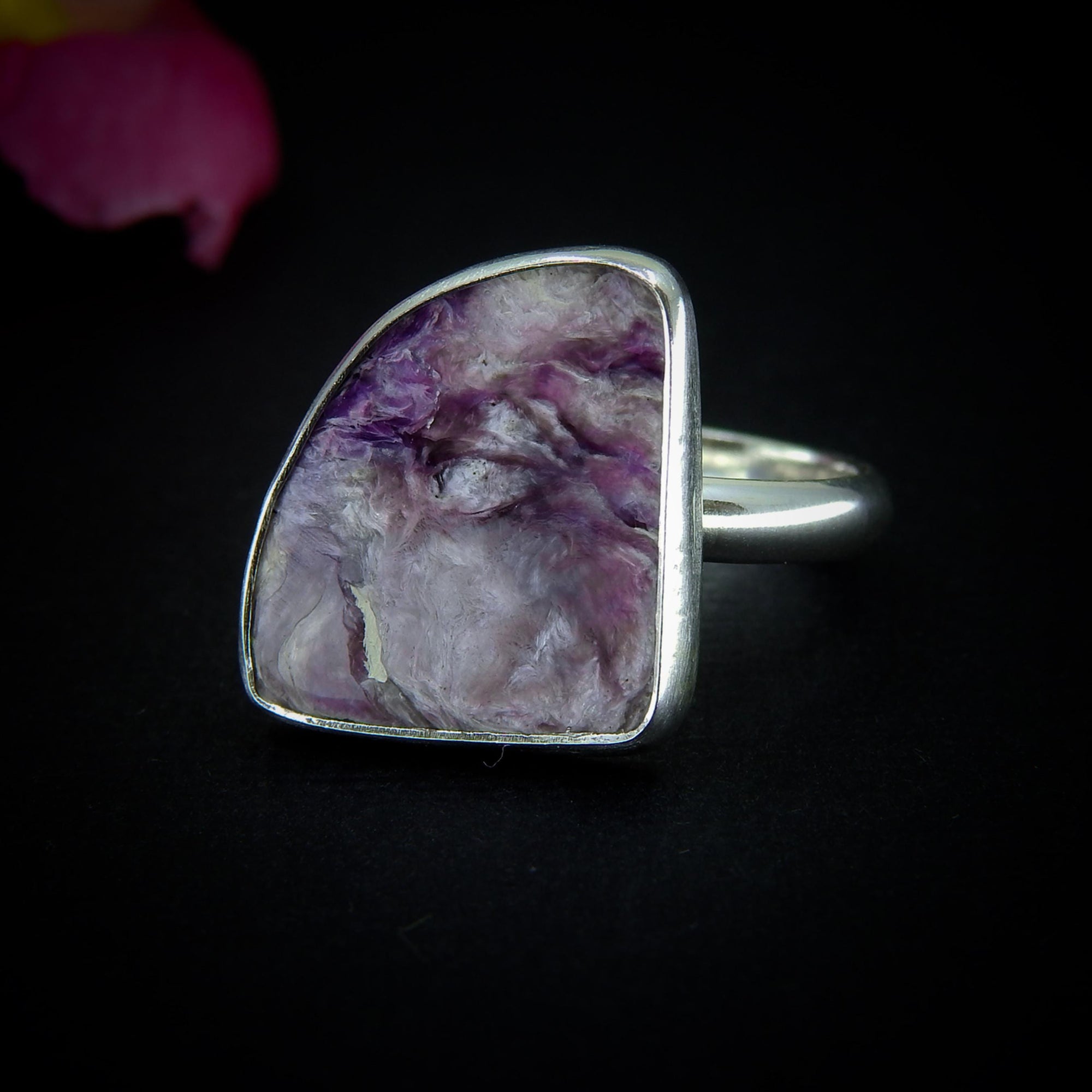 She features an incredible piece of Charoite, shimmering with shades of purple, violet and lilac. As with all my work, she is entirely one of a kind, handcrafted from recycled precious metals and created using cruelty-free practices, ethically sourced crystals, and environmentally conscious methods.