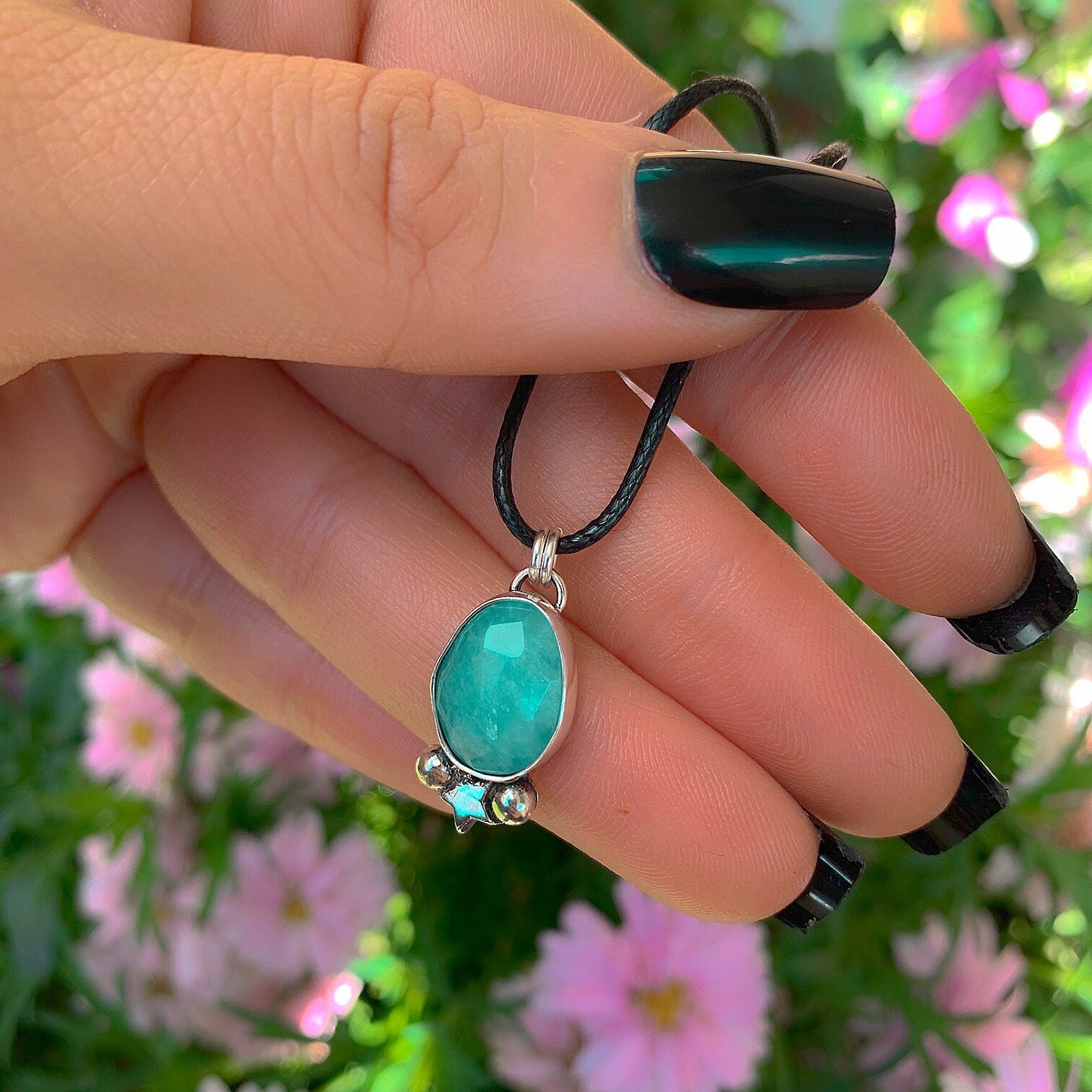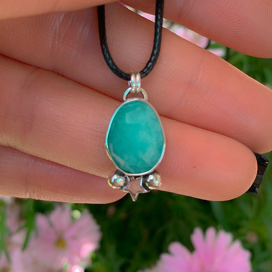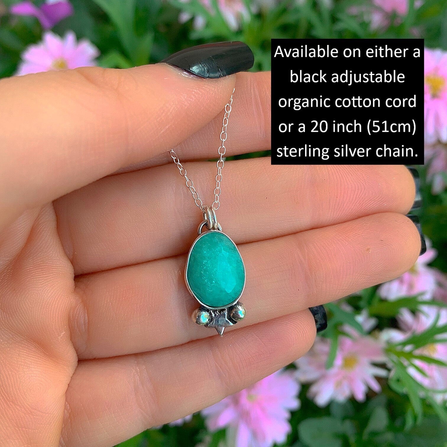 This handcrafted pendant features a beautiful piece of rose cut Amazonite that is the most beautiful and luminous teal green colour. Like all my work, this pendant is a complete one of a kind, made using recycled silver, cruelty-free materials, ethically sourced crystals and environmentally friendly methods.