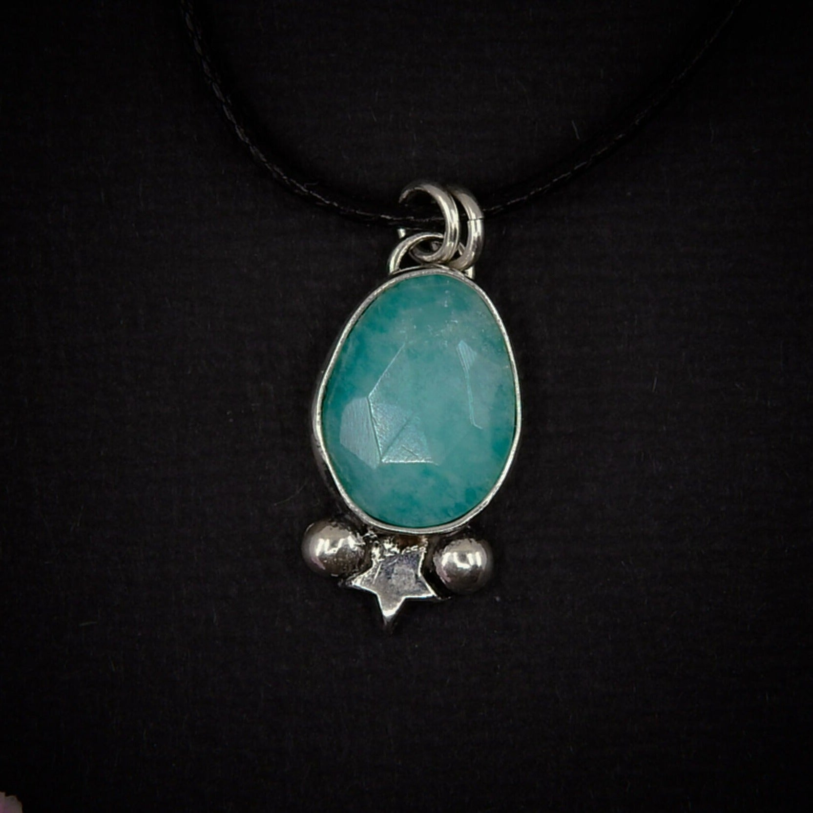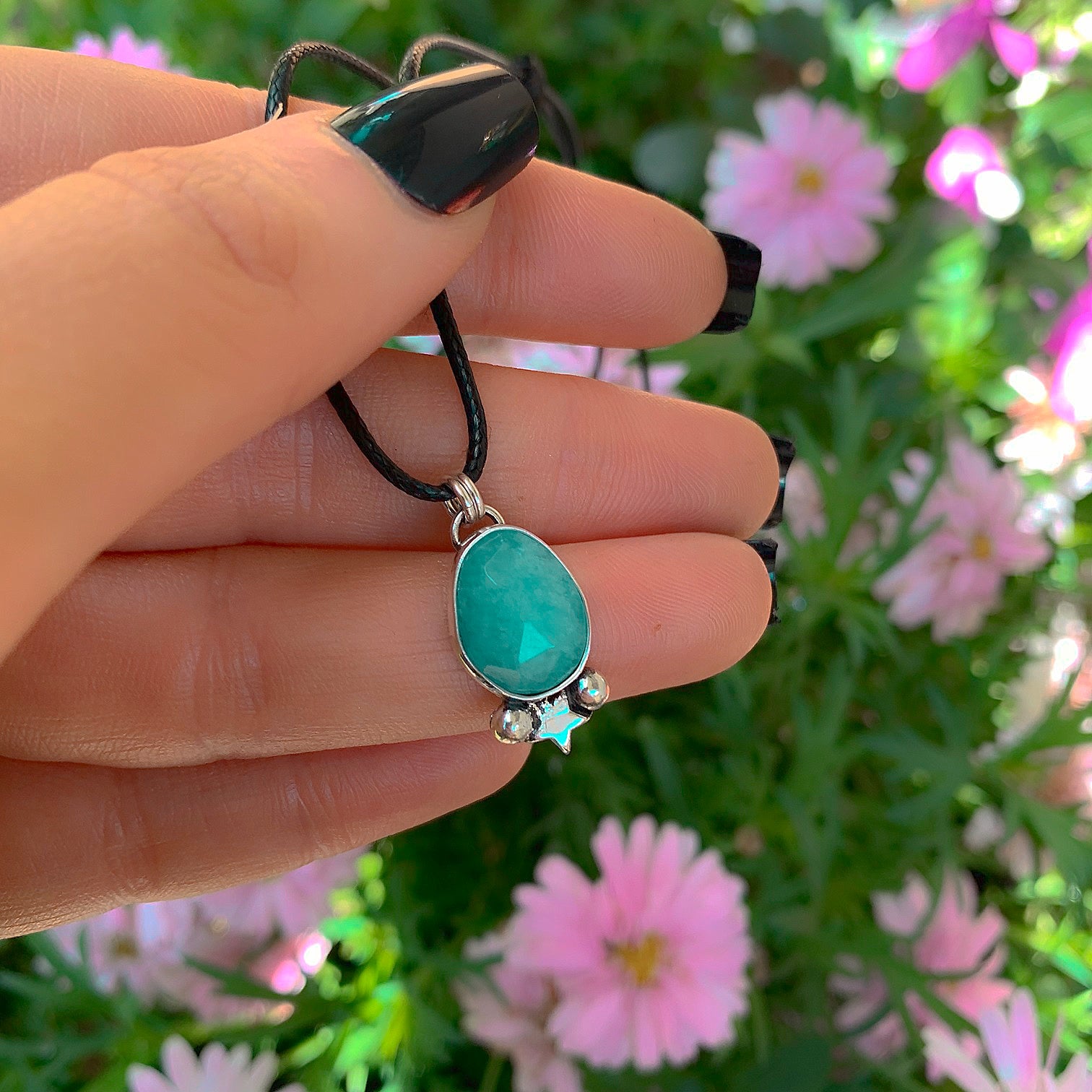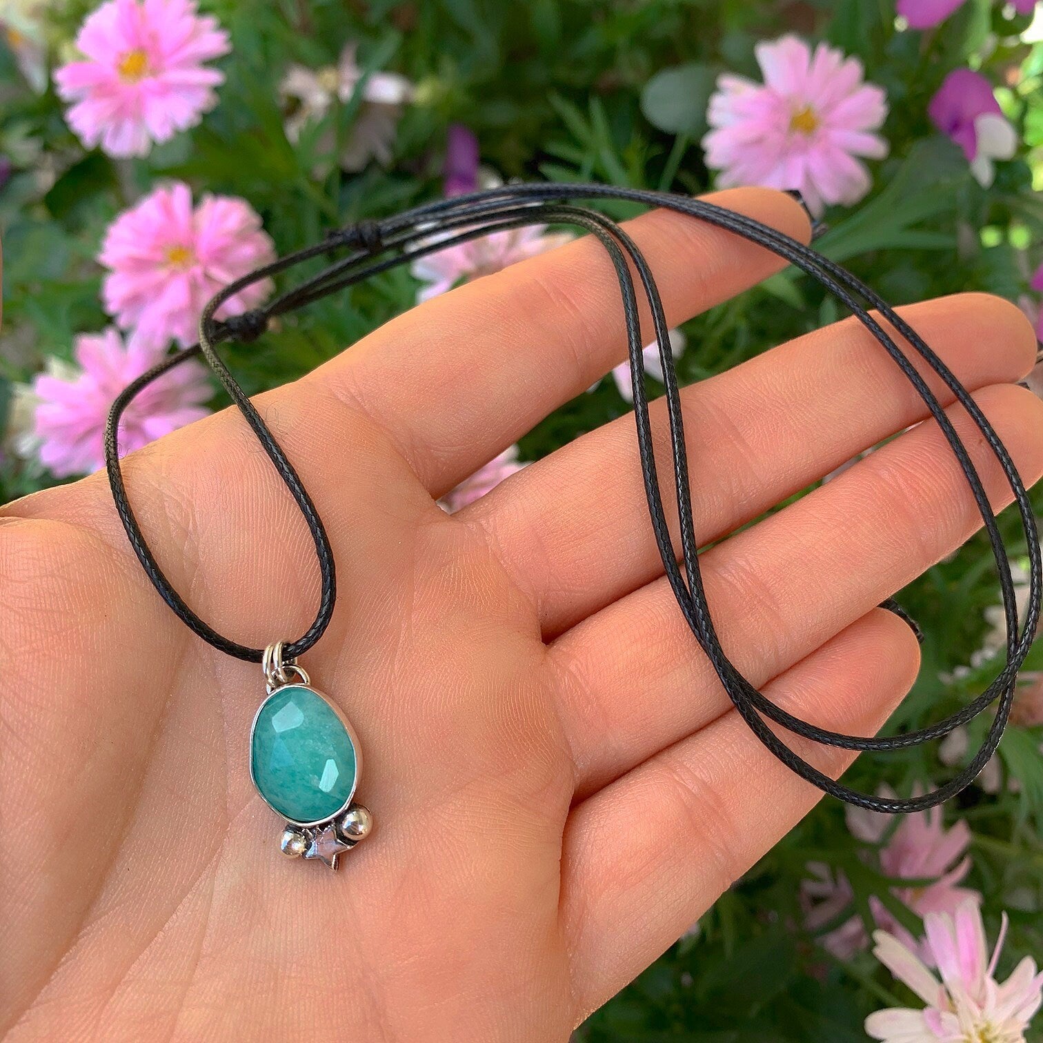 This handcrafted pendant features a beautiful piece of rose cut Amazonite that is the most beautiful and luminous teal green colour. Like all my work, this pendant is a complete one of a kind, made using recycled silver, cruelty-free materials, ethically sourced crystals and environmentally friendly methods.