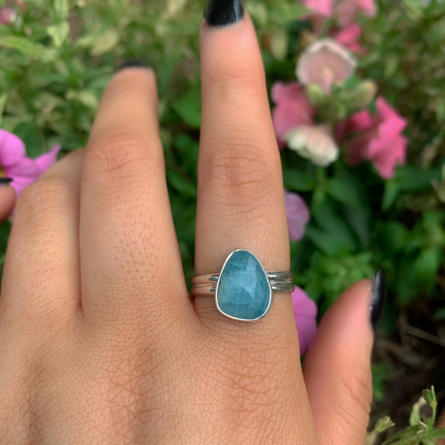 Rose Cut Aquamarine Ring - Size 10 1/4
