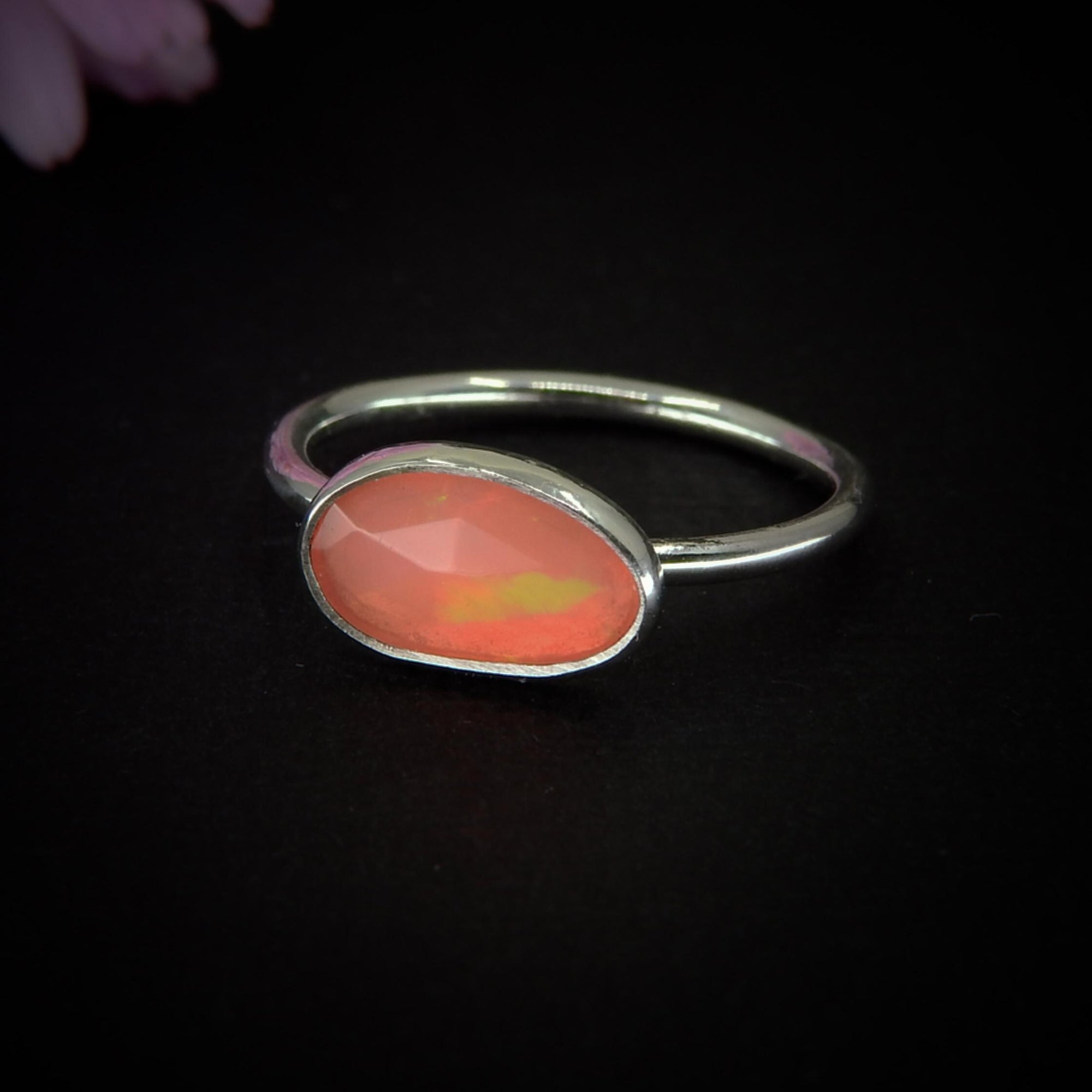 Rose Cut Peach-Pink Opal Ring - Size 7 1/4