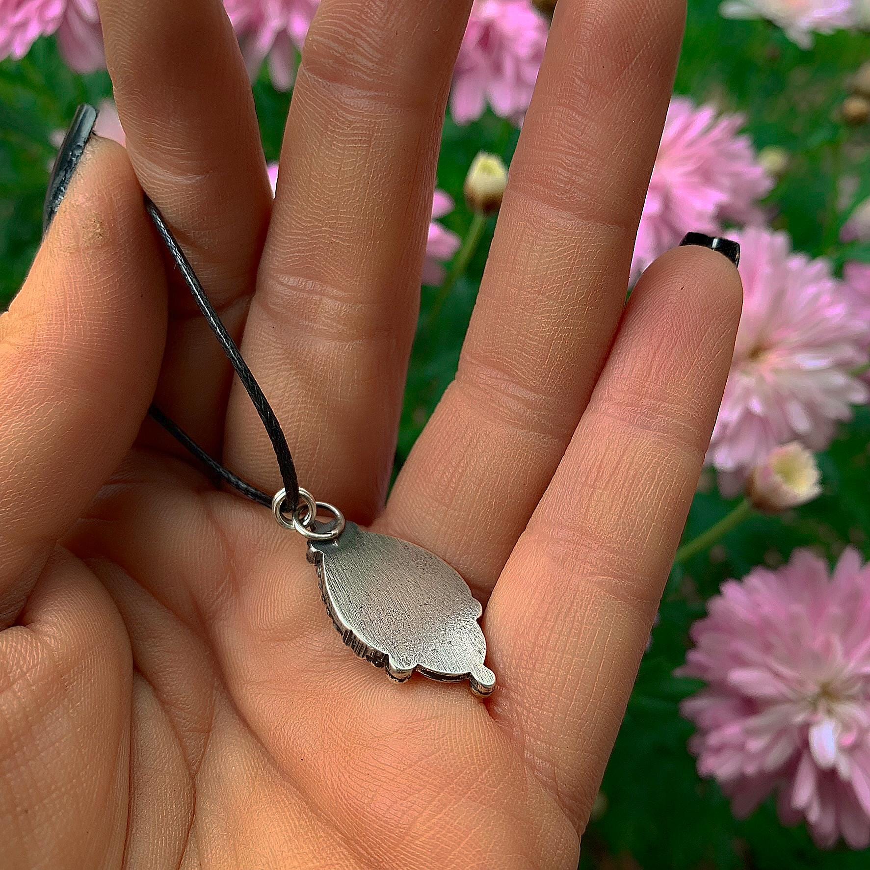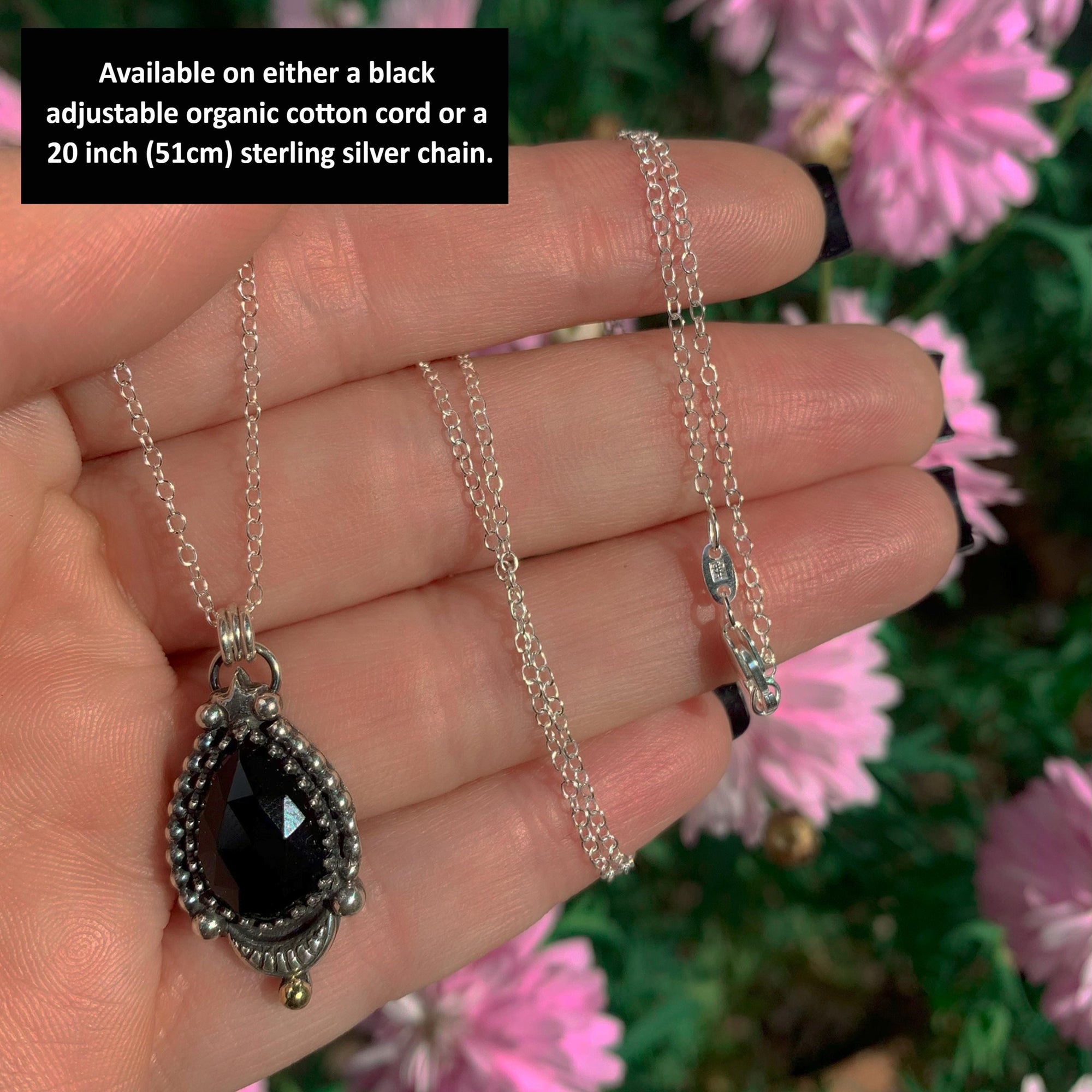 ⦁ Available on either an adjustable black organic cotton cord or a 20-inch (51cm) sterling silver chain.