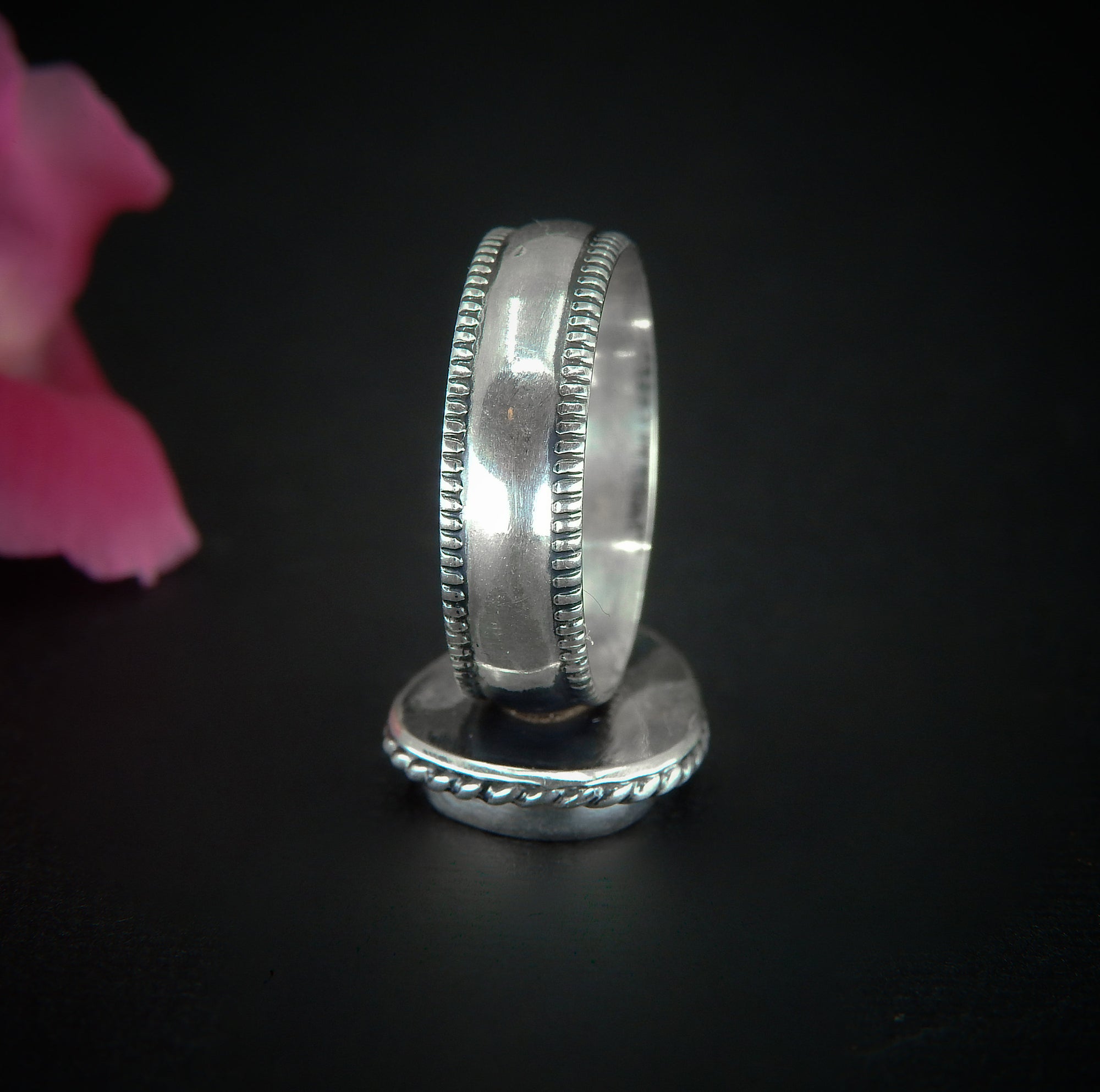 ⦁ 925 sterling silver 5.5mm detailed ring band.