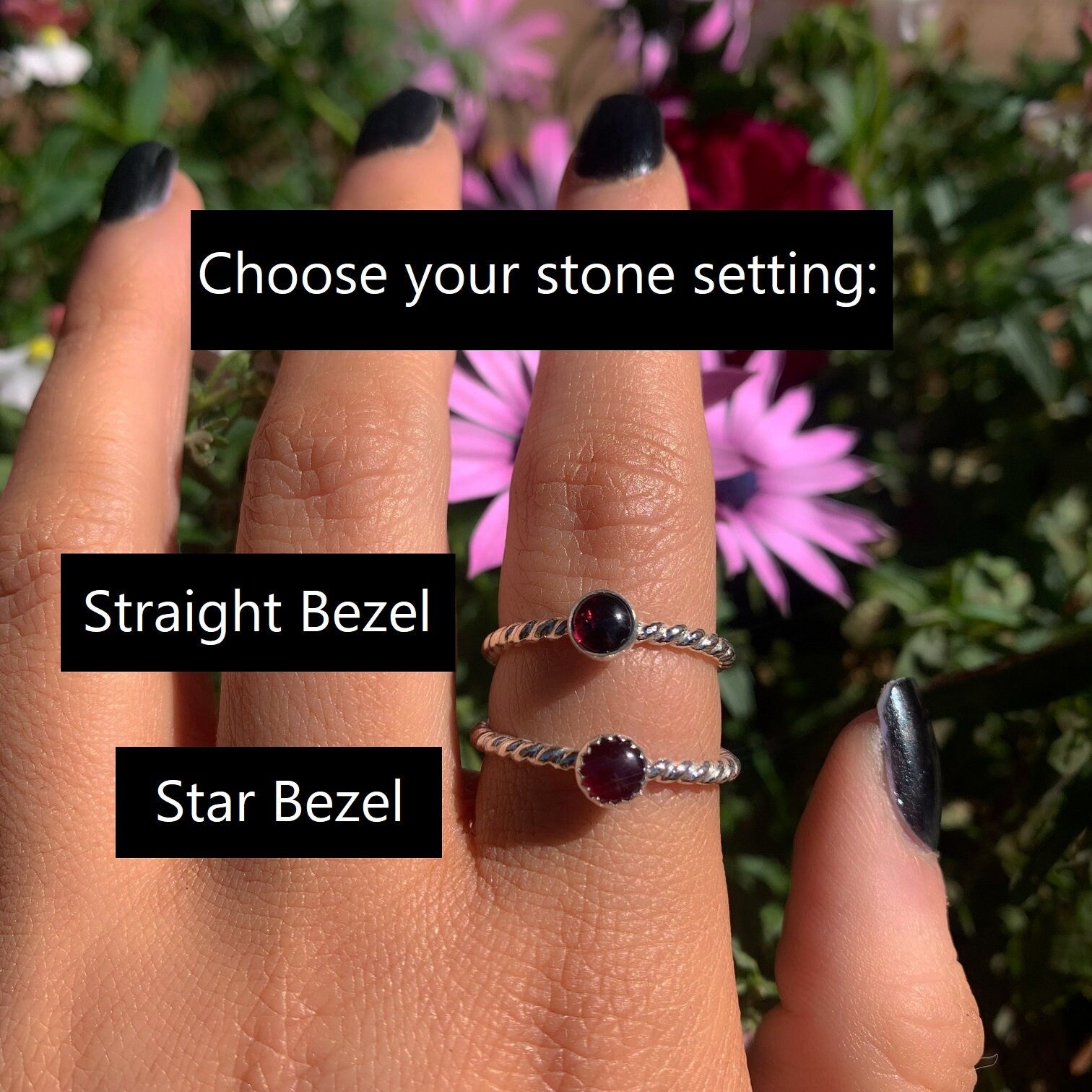 ⦁ The completed ring in the photo is a guide as to how each piece will look. As every gemstone is natural and each ring is handcrafted, your finished ring will be unique.