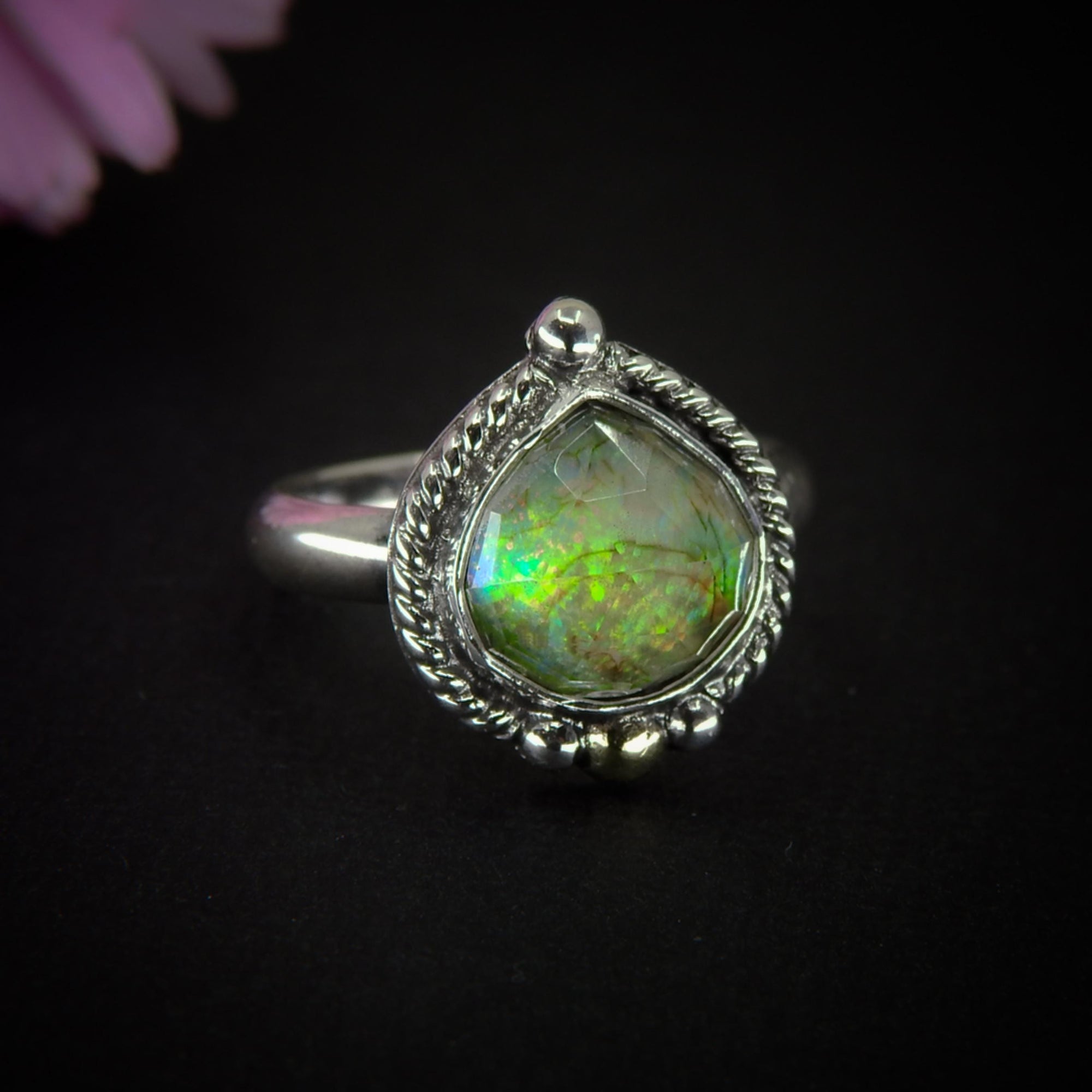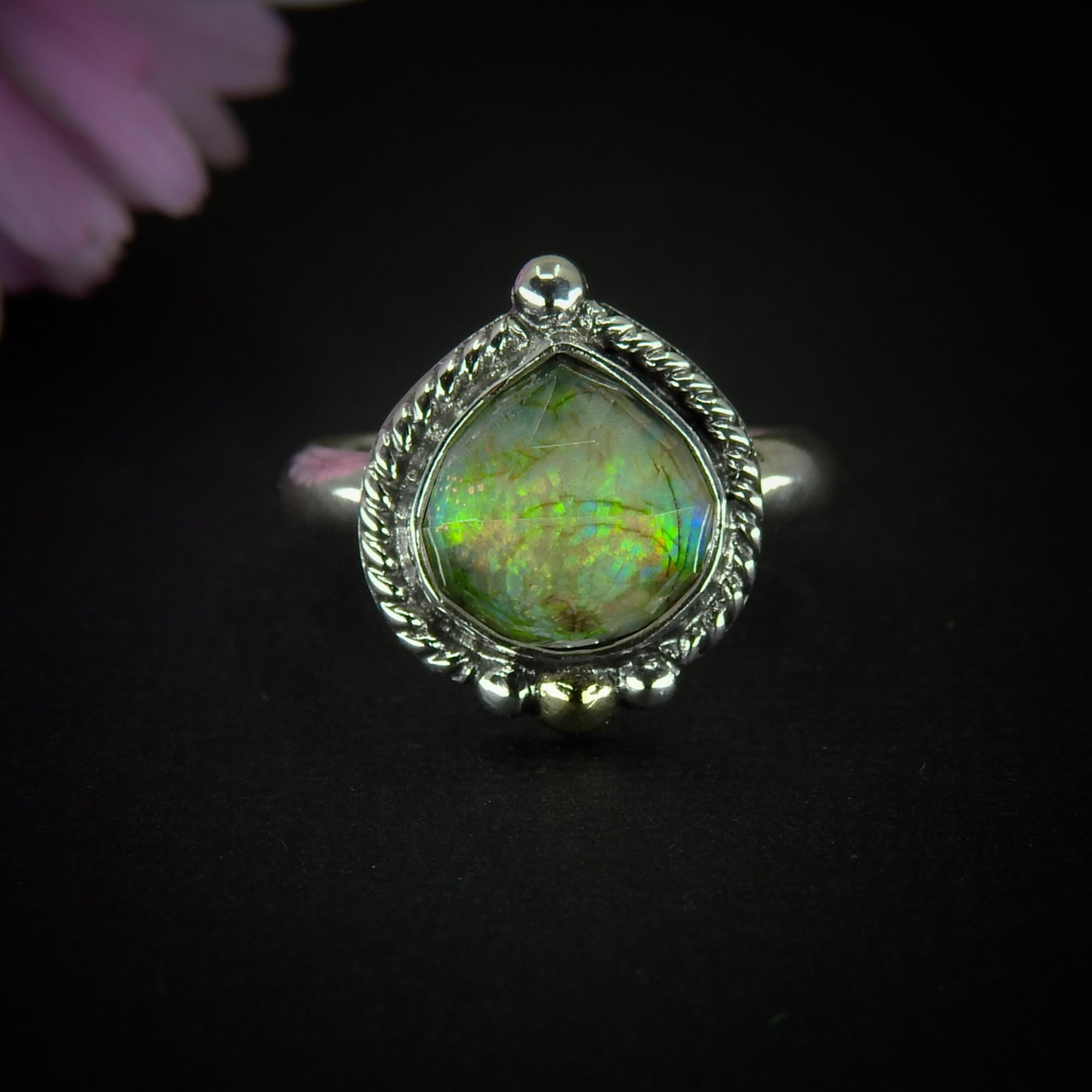 Rose Cut Clear Quartz & Monarch Opal Ring - Size 6 to 6 1/4