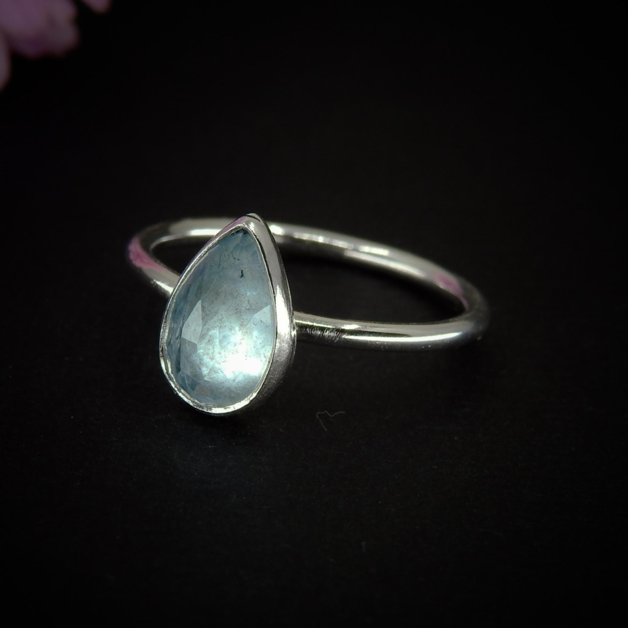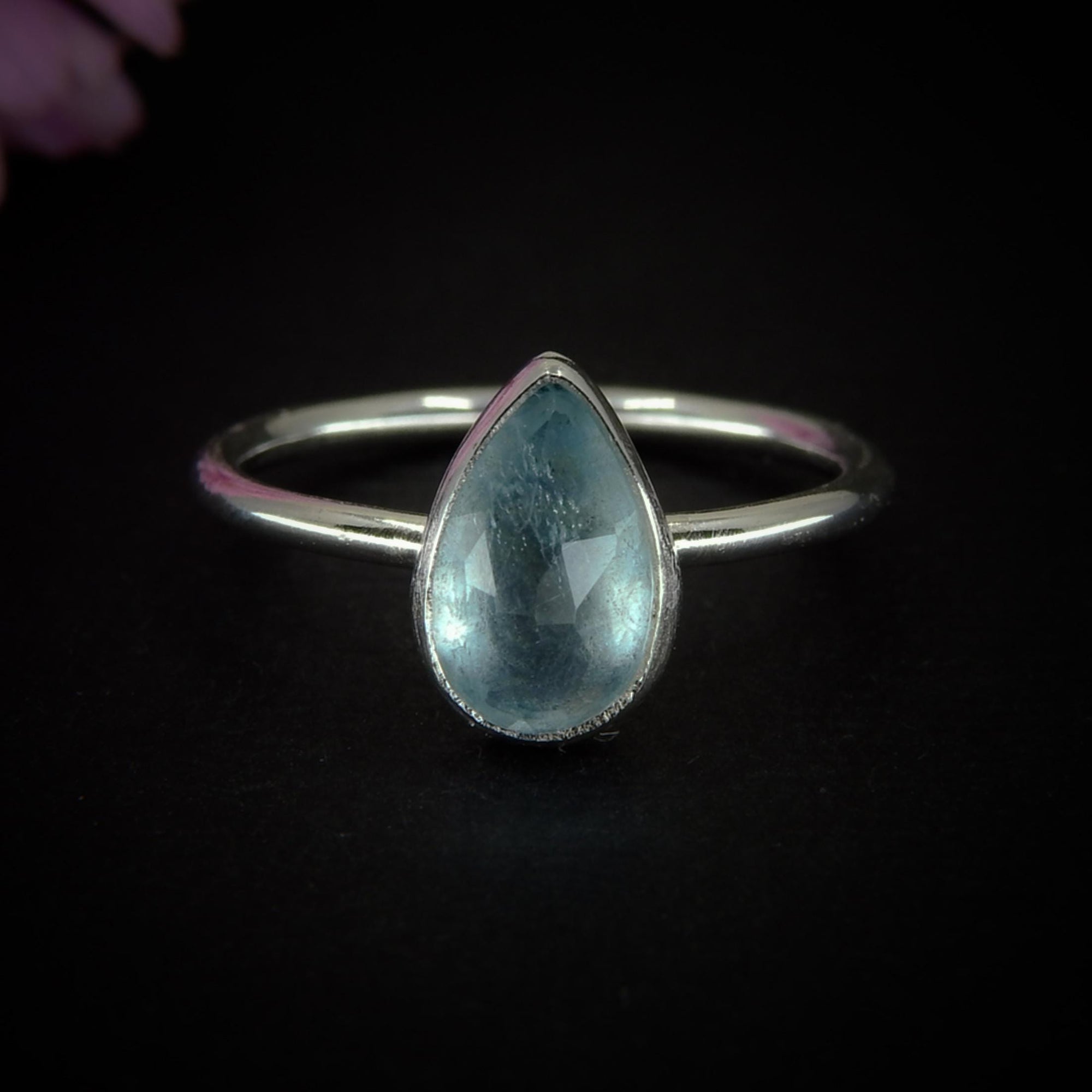 ⦁ Rose cut, teardrop shaped Aquamarine, ethically sourced from Brazil.
