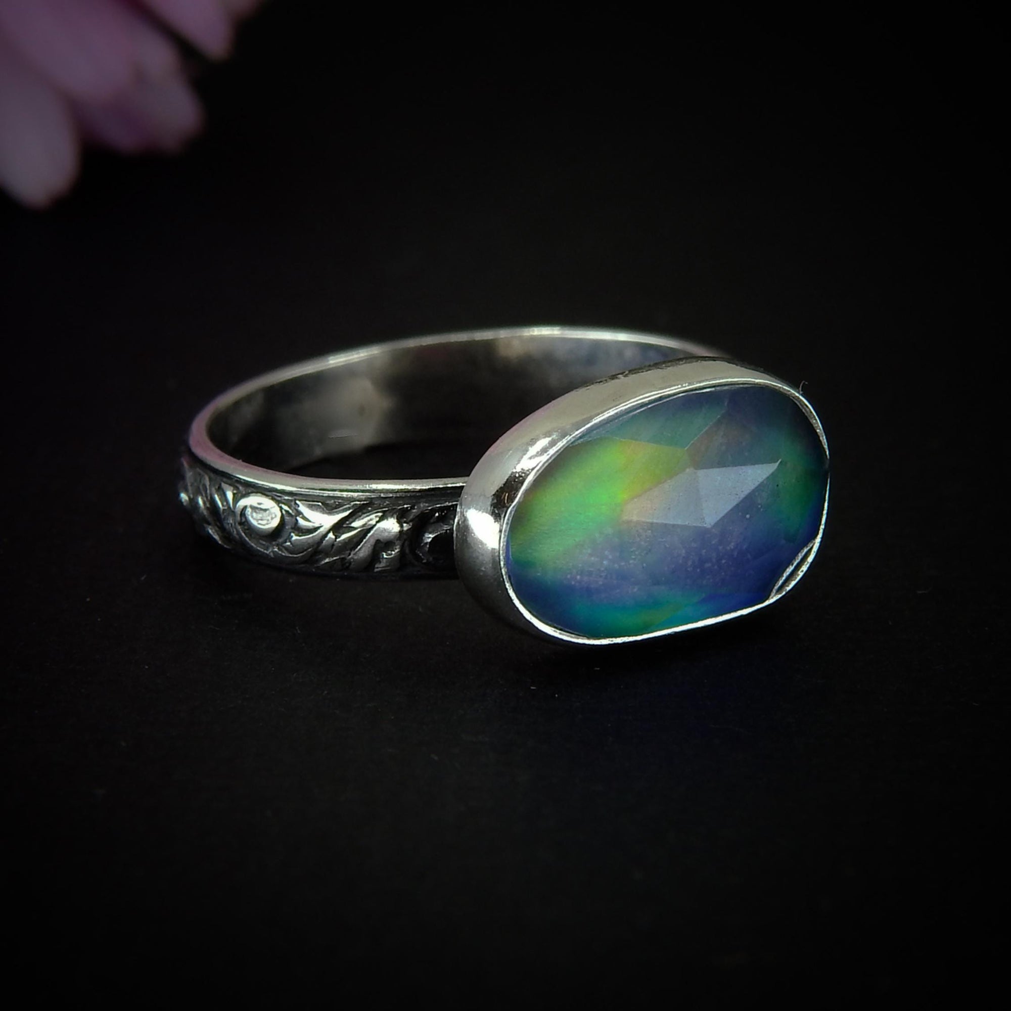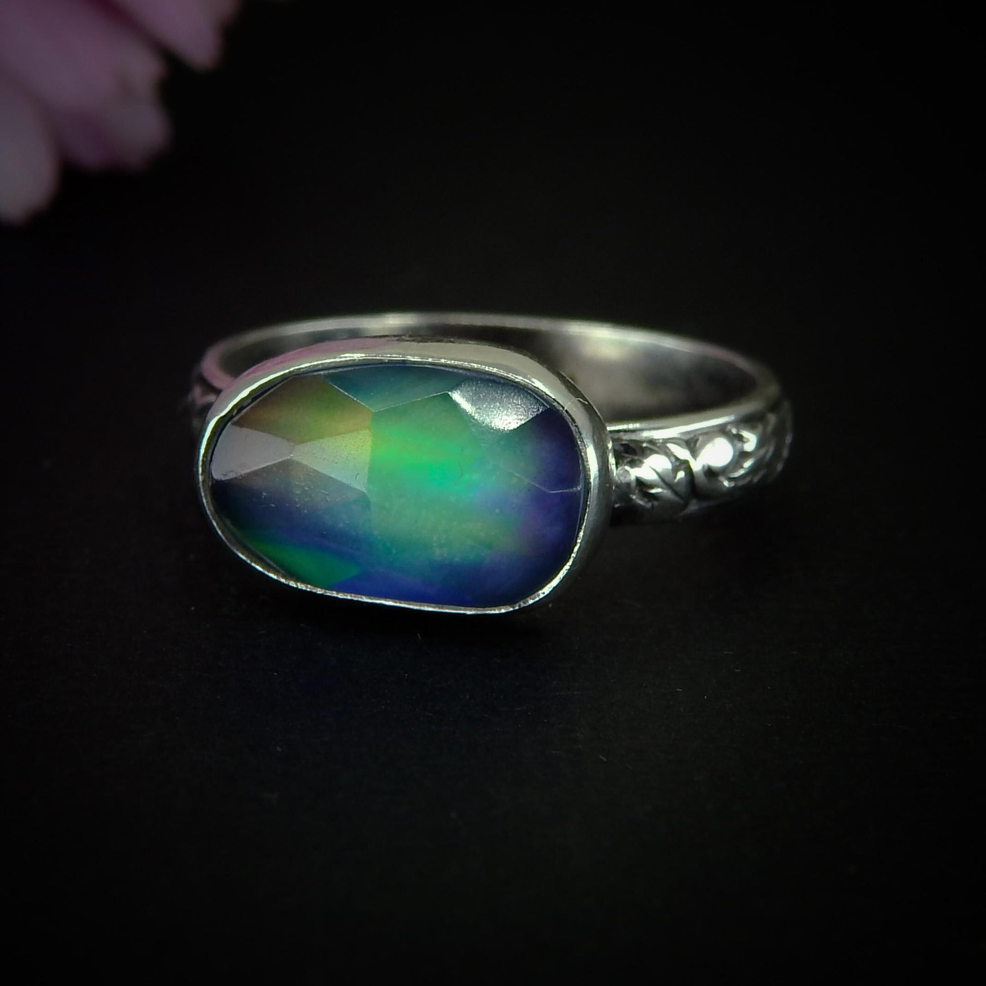 Rose Cut Clear Quartz & Aurora Opal Ring - Size 7 to 7 1/4