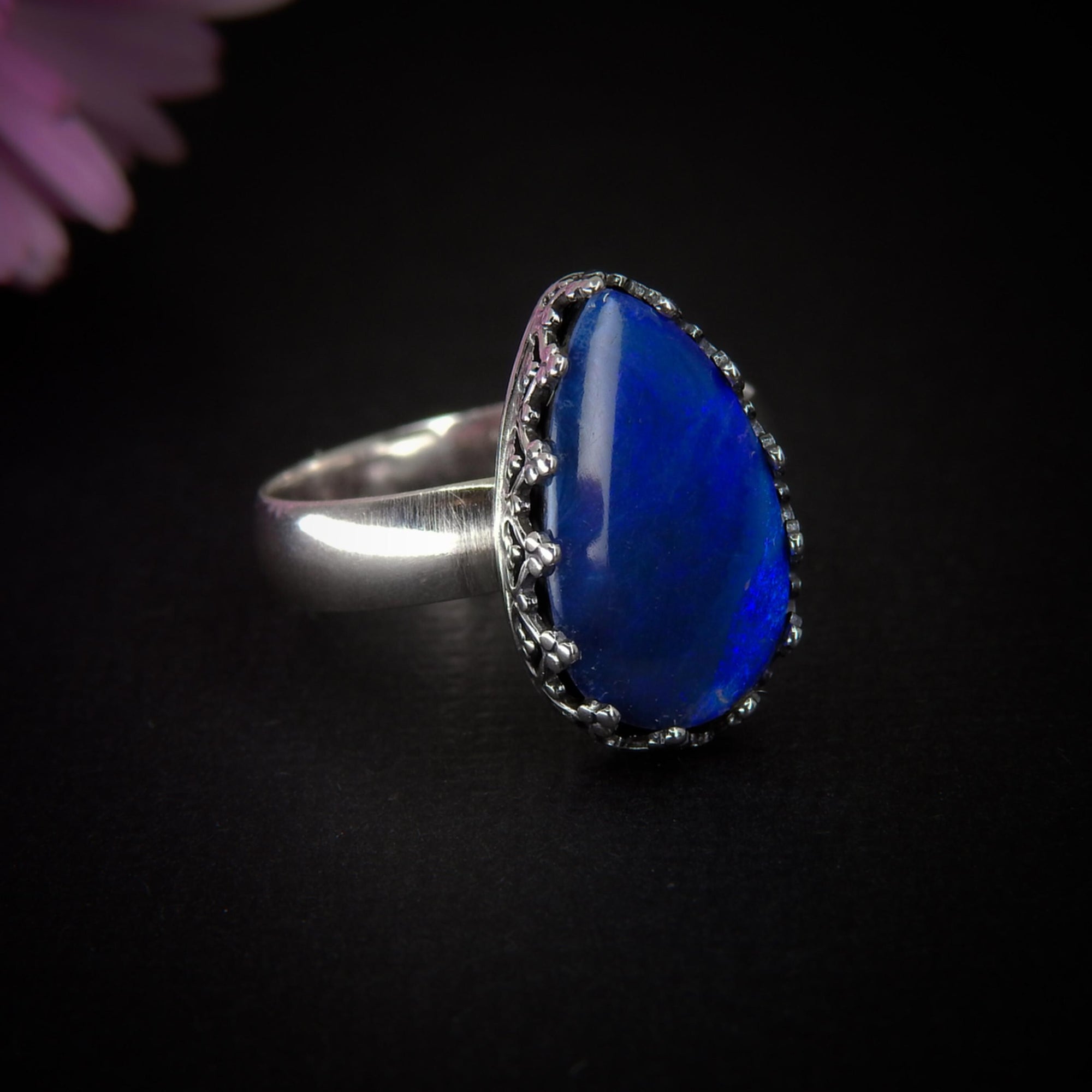 Blue Australian Opal Ring - Size 8 1/4 to 8 1/2