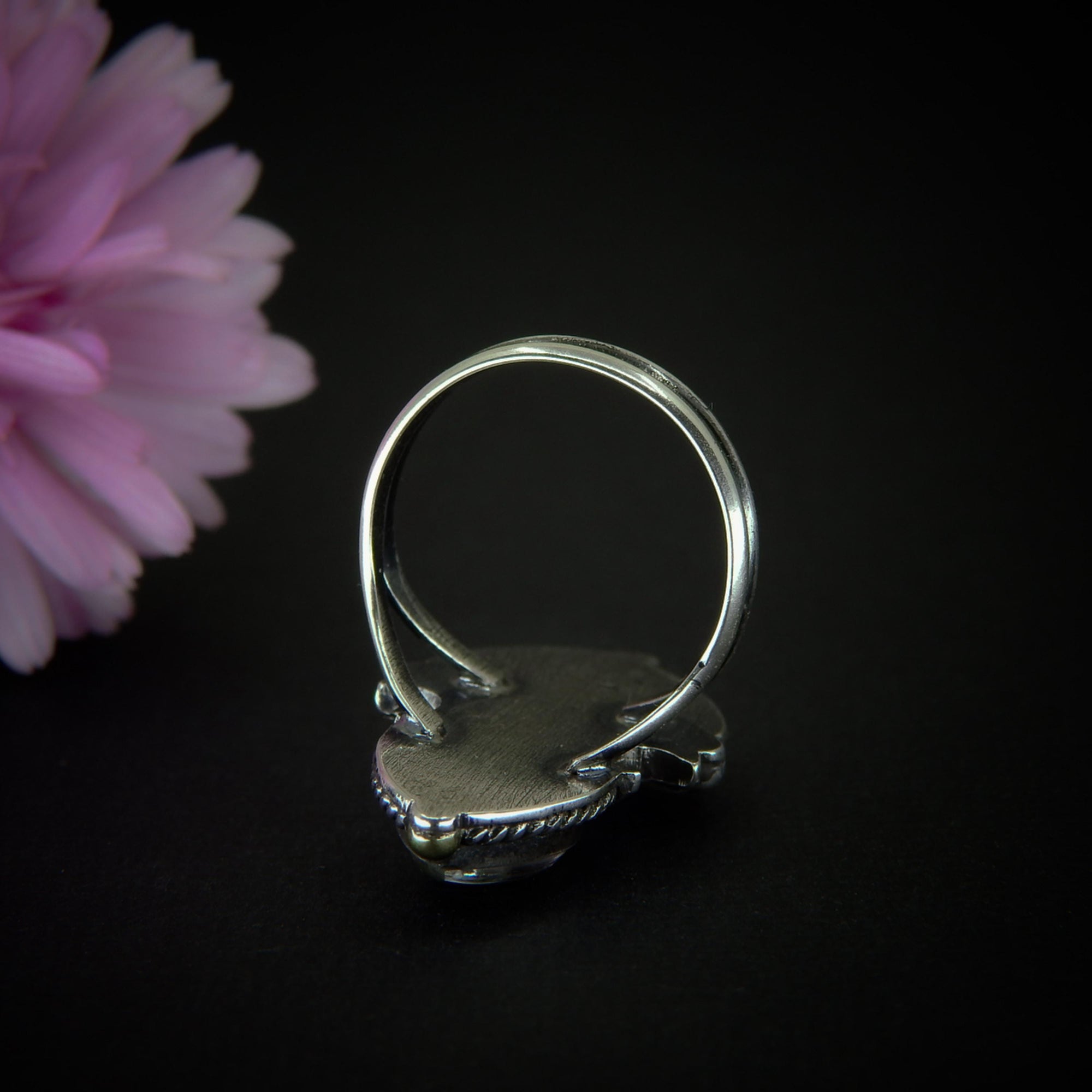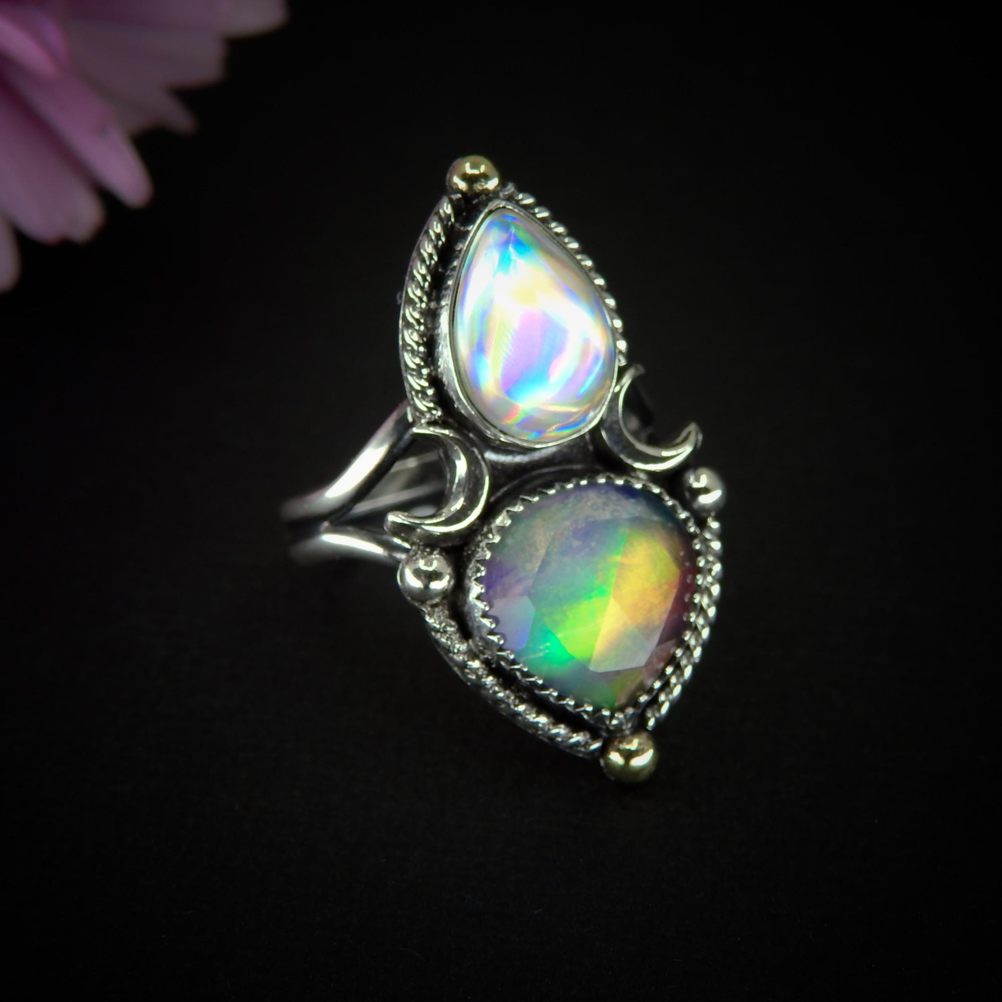 Rose Cut Clear Quartz with Aurora Opal & Angel Aura Quartz Ring - Size 8 1/4