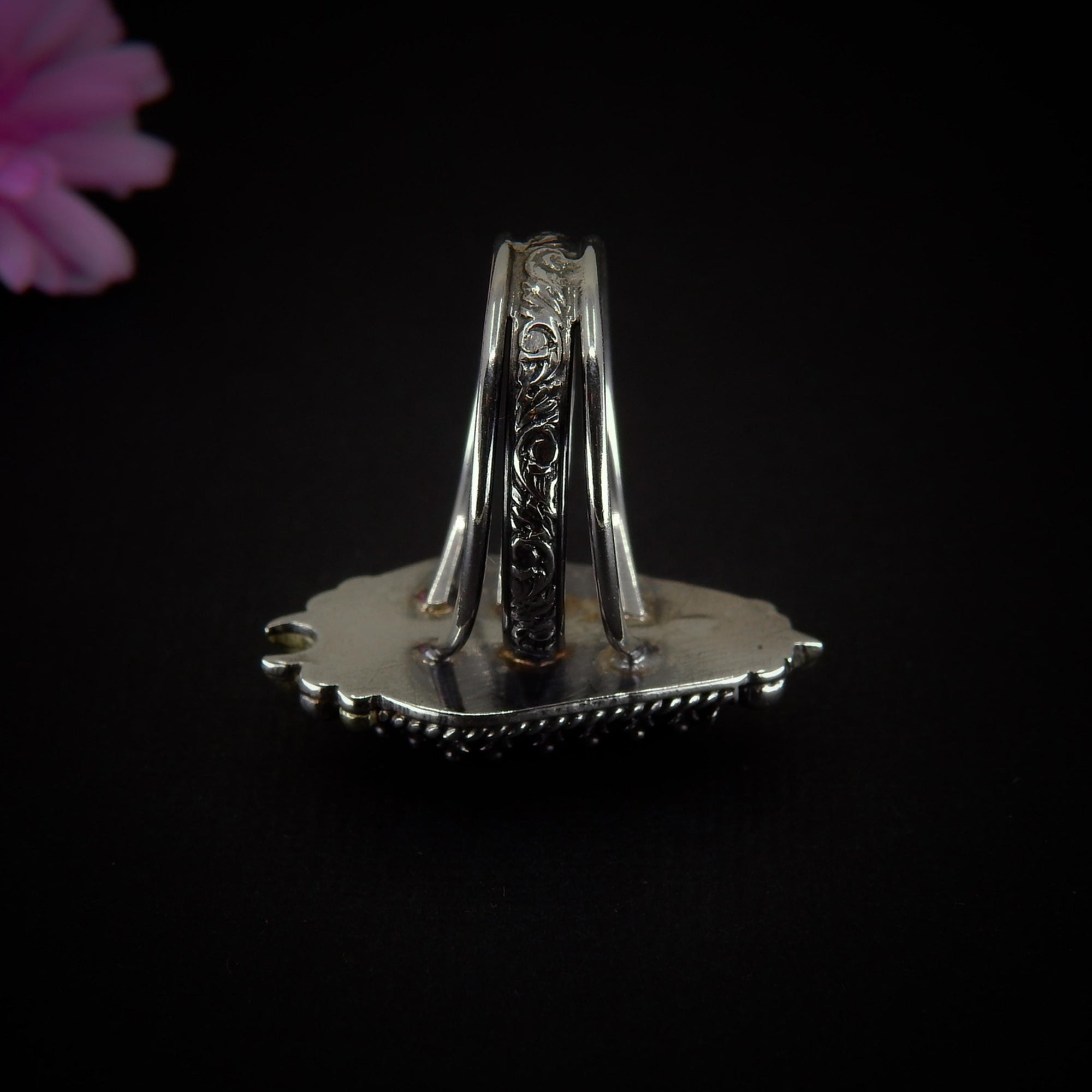 This handcrafted ring hails from the Nocturne collection, a gathering of treasures wrought in honour of Halloween’s spell, where darkness and beauty entwine beneath the veil of night. It features a beautiful Black Onyx carved into its coffin shape, reflecting the light across its facets like the shimmer of the moon against the midnight sky. Named for Moronoe, the healer and dreamweaver of Avalon, who worked by moonlight to restore the spirit. This ring glows with her quiet power and protective energy. Like all my work, it is a complete one of a kind, made using recycled silver, cruelty-free materials, ethically sourced stones and environmentally friendly methods.